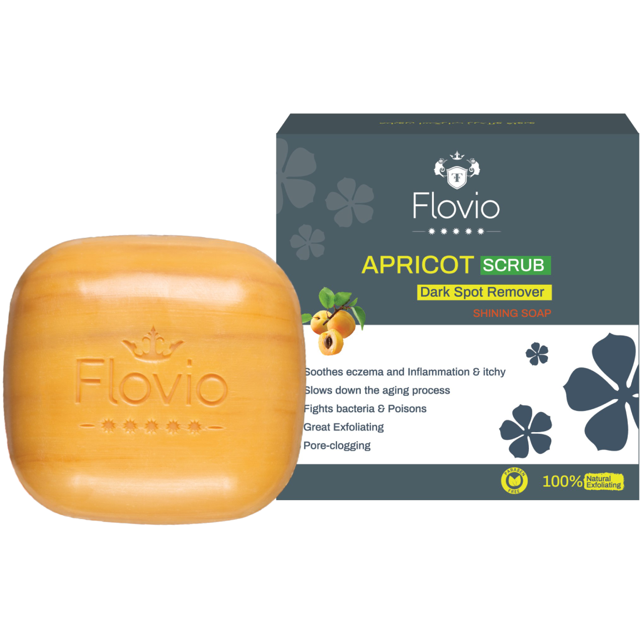 صابون اسکراب زردآلو فلویو با دانههای طبیعی، پوست را لایهبرداری و سلولهای مرده را پاکسازی کرده، لطافت و شادابی طبیعی پوست را بازمیگرداند